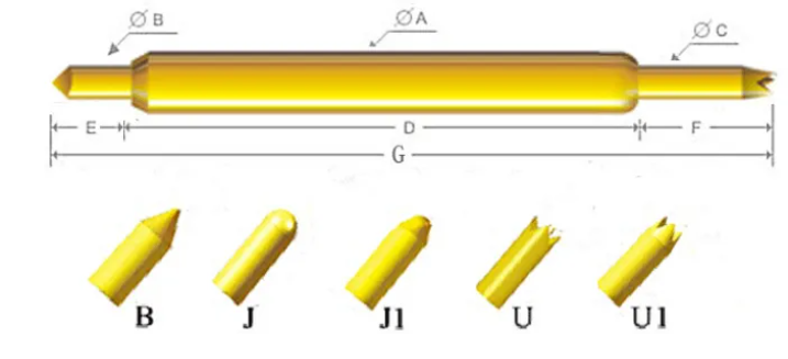 測試針,業(yè)內(nèi)也稱探針,用于PCB板測試時又分為彈簧針,彈簧針根據(jù)使用情況又分為PCB板探針、ICT探針、BGA探針,PCB板探針主要用于PCB板測試,ICT探針主要用于插件后的在線測試,BGA探針主要用于BGA封裝測試及芯片測試。