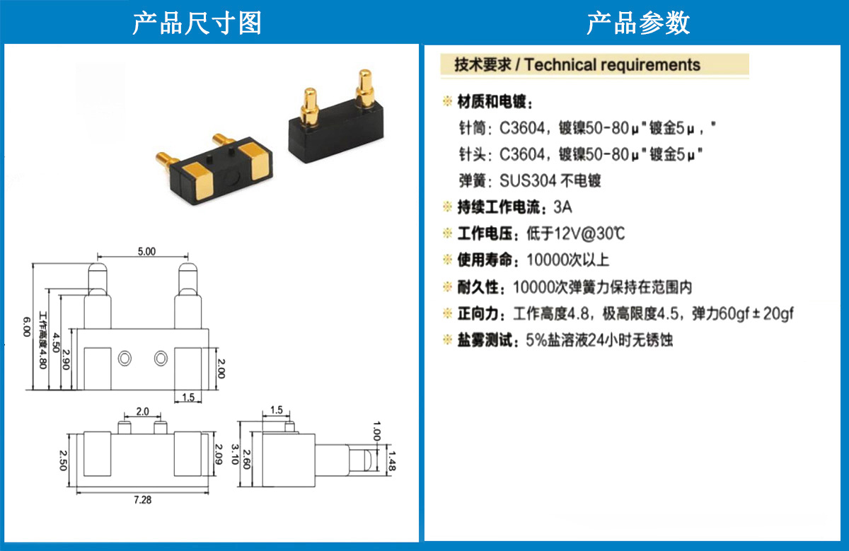 產品介紹:這個針通常用于智能手表,藍牙耳機上的有充電的功能,但是探針總體來說還是測試的