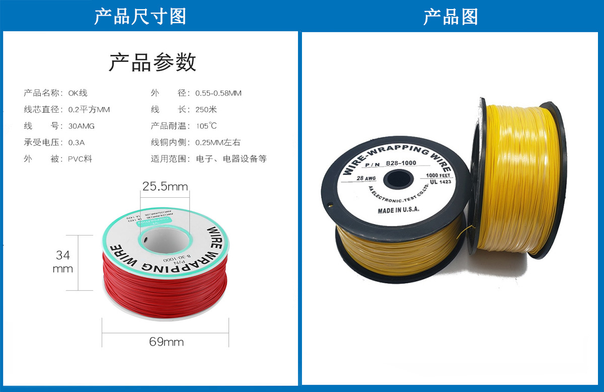 產品簡介:治具配件,測試配件,OK線,28#OK線 ,導線單芯銅線